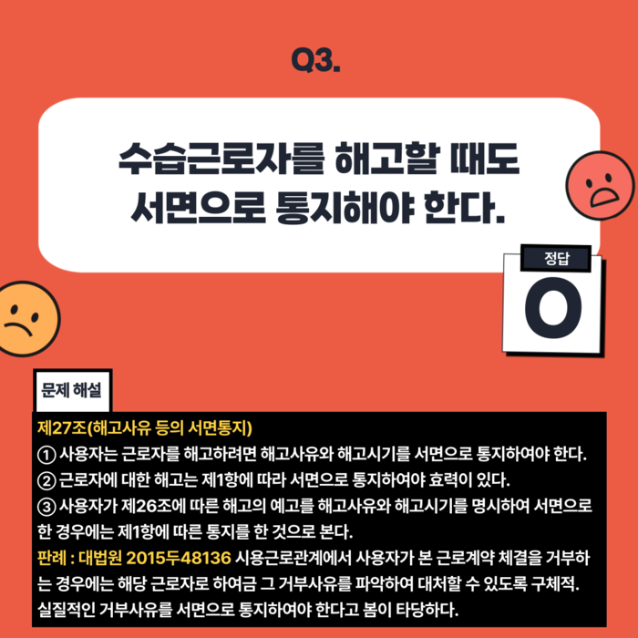 [노동인권 서포터즈 5기][카드뉴스] 이것도 부당해고인가요? 부당해고 OX퀴즈