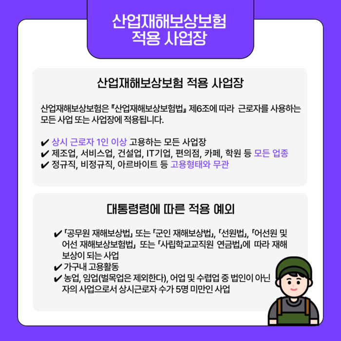 단, 1명 이상 근로자를 쓰는 사업장이라면 모두 해당돼요.