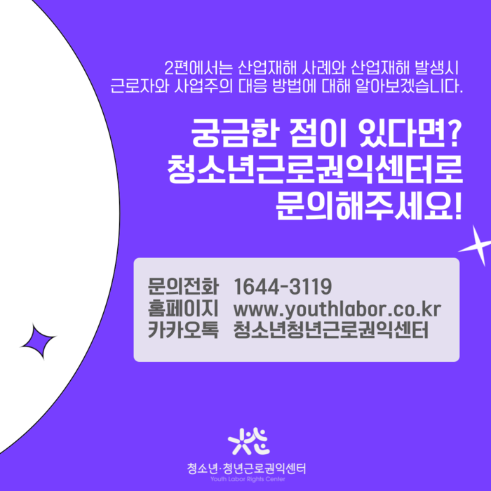 궁금한 점이 있다면 청소년근로권익센터로 문의하세요.