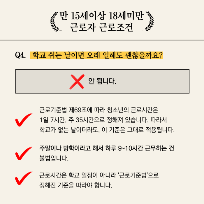 청소년의 근로 조건은 일반 근로조건과 다르다는 걸 아시나요?