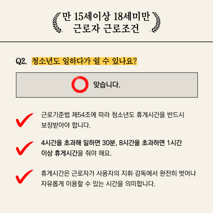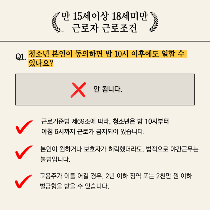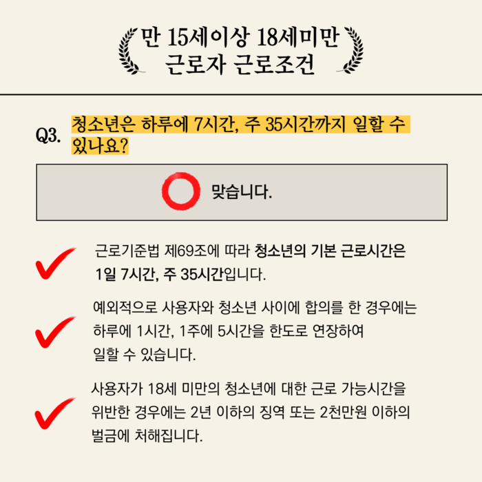 [노동인권 서포터즈 5기][카드뉴스] 청소년 노동권 퀴즈 : 청소년 근무시간 제한 편