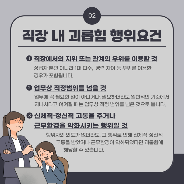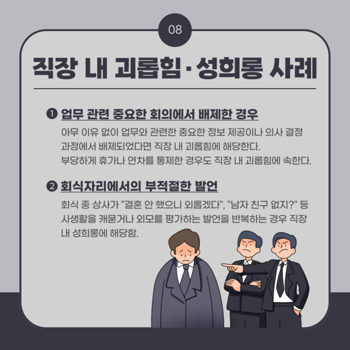 좋은 업무환경을 위해 반드시 근절되어야 할 직장내 괴롭힘, 성희롱.