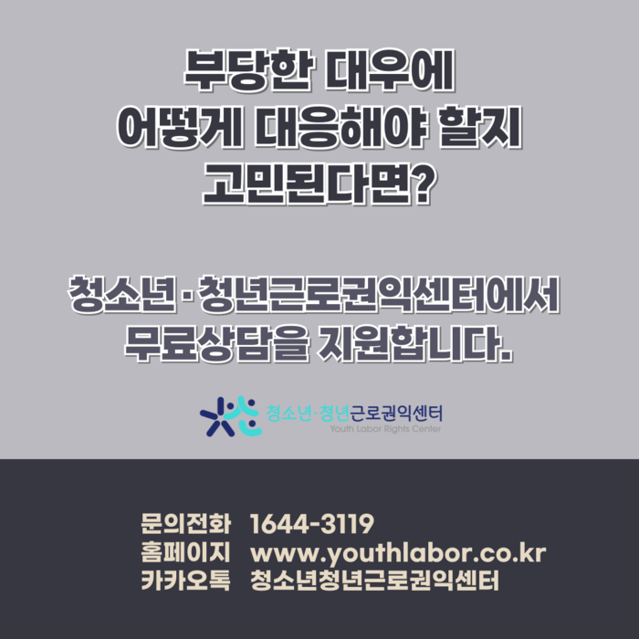 청소년·청년근로권익센터에서 무료 상담을 지원합니다.
