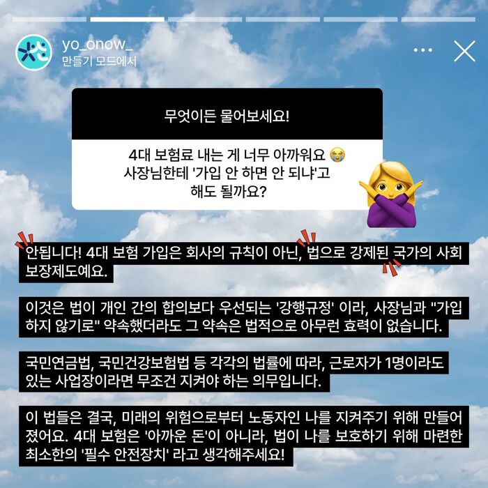 4대 보험료를 내는게 너무 아까워요, 보험료 안내도 될까요?